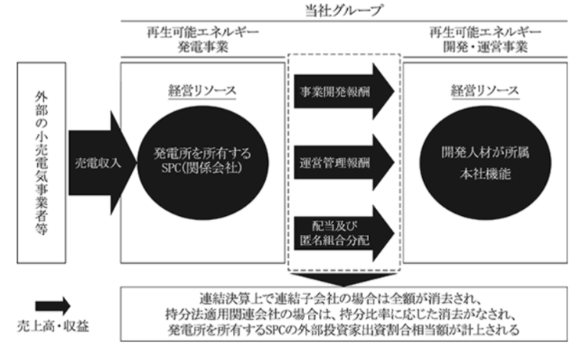 こちらは違いがわかりにくいのですが、共同出資者と一緒に発電会社を立ち上げることにより、収益が得られる事業となります。具体的には、発電所を保有する特定目的会社(SPC)から、事業立ち上げに伴う事業開発報酬や、運営することによる運用管理報酬、配当報酬などにより収益が得られるビジネスです。